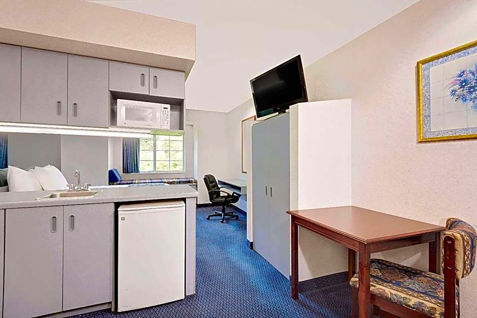 This suite has a refrigerator, microwave and coffee maker.